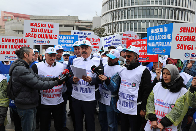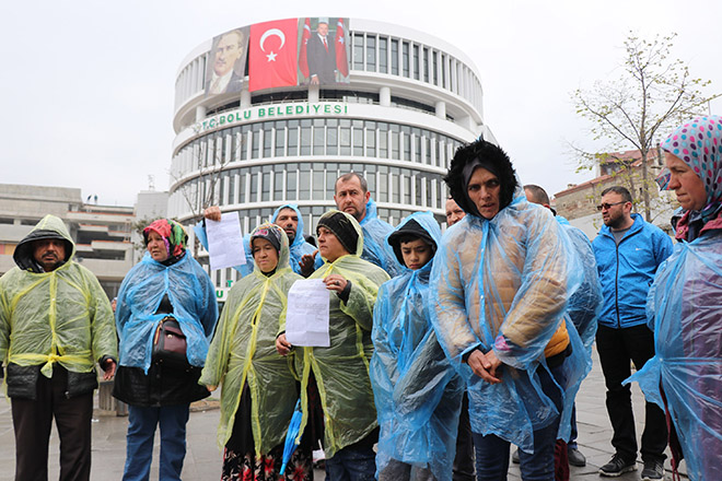 Bolu’da, geçtiğimiz günlerde Bolu Belediyesi’nden işten çıkarılan temizlik işçileri sabah saatlerinde belediye binası önüne gelerek eylem yaptı. Hizmet-İş Sendikası temsilcilerinin de bulunduğu eylemde, temizlik işçileri Belediye Başkanı Tanju Özcan’ın kararını geri almasını istediler. İşçiler adına basın açıklaması yapan Hizmet- İş Sendikası Genel Başkan Yardımcısı Halil Özdemir, “Bolu’da emekçi kıyımına son verilsin. Emekçilere baskı yapan, onları intiharın eşiğine sürükleyen belediye başkanını zulme son vermesi için uyarıyoruz. 31 Mart seçimlerinden sonra CHP’ye geçen Bolu Belediyesi’nde üyemiz işçilere, emekçilere yönelik baskılar artarak devam etmektedir. Daha mazbatanın verilmediği günlerde başlayan baskılar, artarak tahammül boyutunu aşmış bulunmaktadır. 1 Nisan’da baskılarla başlayan emek düşmanlığı yıllardır büro personeli ve zabıta olarak çalışan personelin Park ve Bahçeler’e gönderilmesiyle devam etmiş, biri engelli 100’e yakın arkadaşımızın iş akitlerinin feshedilmesiyle sürdürülmektedir. Belediye bütçesini gerekçe göstererek işçilere zulmetmek akıl karı değil. Burada sizden önce belediye başkanları vardı. Hem hizmet ediyorlar hem de işçilerin ücretlerini ödüyorlardı. Kimin bütçesini kimden kaçırıyorsunuz” dedi. Basın açıklamasının ardından, işten atılan işçiler belediye binası önünde oturma eylemi yaptı.