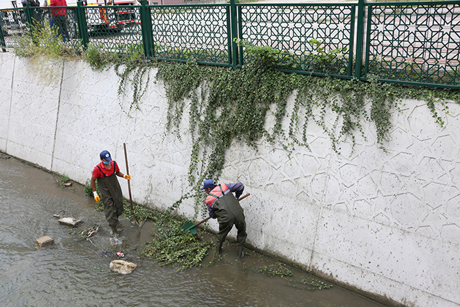 Koronavirüs salgını nedeniyle rutin temizlik çalışmalarını aralıksız sürdüren Bolu Belediyesi Temizlik İşleri Müdürlüğü, dere temizliklerini de imal etmiyor.