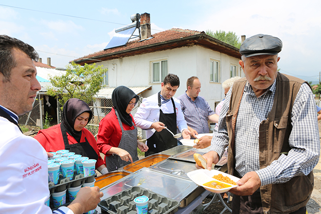 Köy muhtarı Sefer Sezer, burada yaptığı açıklamada, dün akşam saat 16’dan beri sel ile mücadele ettiklerini belirterek “Tüm birimler buralarda. Sağ olsun belediyemizde sıcak yemek hizmeti veriyor. Herkesten Allah razı olsun” dedi. Köy sakinleri de Bolu Belediye Başkanı Tanju Özcan ve belediye ekiplerine yemek ikramı dolayısıyla teşekkür etti.