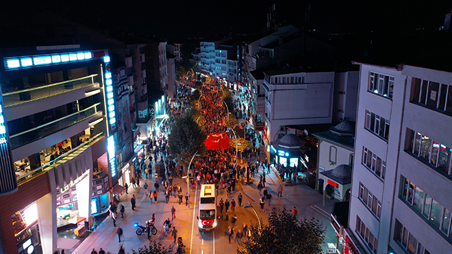 Türk Silahlı Kuvvetleri’nin Fırat’ın doğusunda terör örgütlerine karşı düzenlediği Barış Pınarı Harekâtı sürerken, Bolu Belediye Başkanlığı öncülüğünde siyasi parti il başkanları ve binlerce vatandaşın katıldığı destek yürüyüşü düzenlendi. Demokrasi meydanında ellerinde Türk bayraklarıyla bir araya gelen vatandaşlar, dev Türk bayrağının arkasında İzzet Baysal Caddesi boyunca yürüdü. ‘Ne mutlu Türküm diyene’, ‘Her Türk asker doğar’, ‘Şehitler ölmez vatan bölünmez’ sloganlarının atıldığı yürüyüş Kent Meydanı’nda sonlandı.