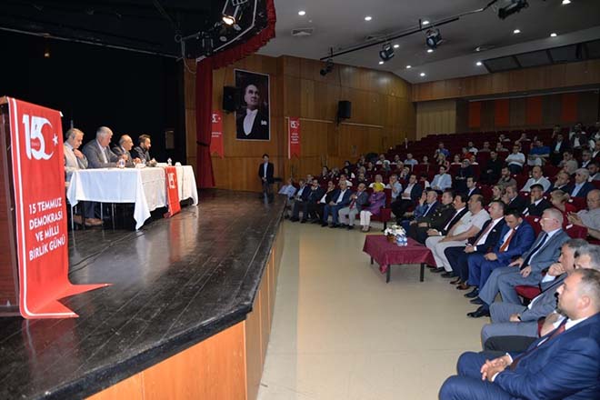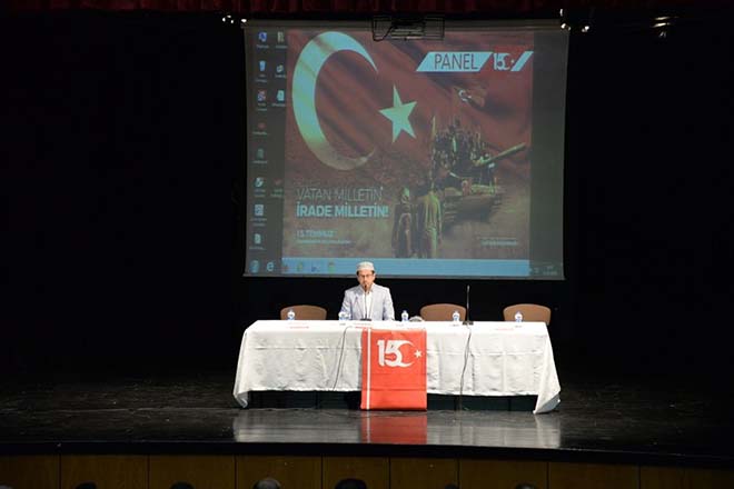 İl Kültür ve Turizm Müdürlüğü Salonunda düzenlenen konferansa Bolu Valisi Ahmet Ümit, Garnizon Komutan Vekili Piyade Albay Ümit Koçak, Bolu Abant İzzet Baysal Üniversitesi Rektörü Prof. Dr. Mustafa Alişarlı, Cumhuriyet Başsavcısı Önder Yaman, Vali Yardımcısı Ahmet Atılkan ile Çağlayan Kaya, Bolu Belediye Başkan Yardımcısı İsa Özcan, İl Jandarma Komutanı Jandarma Albay Nadir Çelik, İl Emniyet Müdürü Armağan Adnan Erdoğan, daire müdürleri, şehitlerimizin aileleri ve vatandaşlar katıldı. Saygı Duruşu ve İstiklal Marşı’nın okunması ile başlayan konferans BAİBÜ İlahiyat Fakültesi Öğretim Görevlilerinden Sinan Özdemir tarafından Kuran-ı Kerim tilaveti ile devam etti. Programın devamında Bolu Abant İzzet Baysal Üniversitesi Öğretim Üyelerinden Prof. Ahmet Ocak’ın moderatörlüğünde Ankara Sosyal Bilimler Üniversitesi’nden Prof. Dr. Muhittin Ataman, İstanbul Üniversitesi’nden Prof. Dr. Haluk Alkan, Sakarya Üniversitesi’nden Bünyamin Bezci ve Sakarya Üniversitesi’nden Doç. Dr. Ali Balcı tarafından sunulan panele geçildi. Panelde konuşmacılar 15 Temmuz darbe girişiminin parametreleri, Türkiye’de darbelerin anatomisi ve 15 Temmuz ile 15 Temmuz ve dış politika gibi konularda katılımcılara bilgiler aktardılar ve katılımcıların da merak ettikleri soruları yanıtladılar. Konferansın ardından Bolu Valisi Ahmet Ümit ile BAİBÜ Rektörü Prof. Dr. Mustafa Alişarlı, konuşmacılara birer teşekkür plaketi verdiler. Bolu Valisi Ahmet Ümit, programın sonunda konuşmacılara ve katılımcılara böyle anlamlı bir programa katıldıkları için teşekkür ederek, 15 Temmuz Demokrasi ve Milli Birlik Günü, kapsamında icra edilecek olan programlara tüm vatandaşları davet etti.