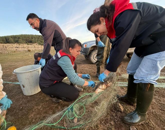 Bolu Tarım ve Orman İl Müdürlüğü ekipleri, Seben ilçesindeki Taşlıyayla Göleti’nde hayalet ağ taraması gerçekleştirdi. Gölete yasadışı olarak bırakılmış 5 kilometre uzunluğundaki misina ağ tespit edilerek toplandı. Ağa takılan 500 balık ise canlı olarak kurtarıldı, bunlardan 300 balık gölete salınırken, 200 balık anaç olarak kullanılmak üzere Gölköy Su Ürünleri Üretim İstasyonu’na nakledildi.