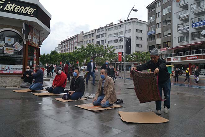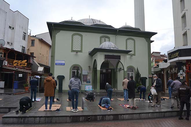 Namaz kılmak için camiye gelen ancak seccadeleri olmayanlar içeri alınmadı. Camiye alınmayan kişiler yağmurlu havaya rağmen camilerin önlerinde bulunan alanlarda kartonların üzerinde namaz kıldı. Cuma namazı için camiye gelen 65 yaş üstü bazı vatandaşlar da sokağa çıkmaları yasak olmaları nedeniyle polisler tarafından uyarılarak evlerine gönderildi. Bolu’da camilerin yanı sıra 17 Temmuz Spor Salonu ile Çıkınlar Mahallesi ile Kalıcı konutlar mevki'inde bulunan kapalı Pazar yerlerinde Cuma namazı kılındı.