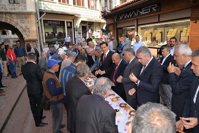Yıldırım Beyazıt Cami önünde yapılan esnaf duasına Bolu Valisi Ahmet Ümit, Bolu Belediye Başkan Yardımcısı Mansur Şen, İl Emniyet Müdürü Armağan Adnan Erdoğan, İl Milli Eğitim Müdürü Yasin Tepe, İl Müftüsü Orhan Genç, Yukarı Çarşı Esnafı ve vatandaşlar katıldı. İl Müftüsü Orhan Genç tarafından yapılan duanın ardından ikramlarda bulunuldu. Dua sonrasında Yukarı Çarşı Esnafı ve vatandaşlarla sohbet ederek talep ve isteklerini dinleyen Sayın Valimiz Ahmet Ümit, “Esnafımızı ahilik geleneğini devam ettirdiği için tebrik ediyorum. Hayırlı ve bol kazançlar diliyorum. Her geçen gününüz bir önceki gününüzden güzel ve bereketli olsun" dedi.