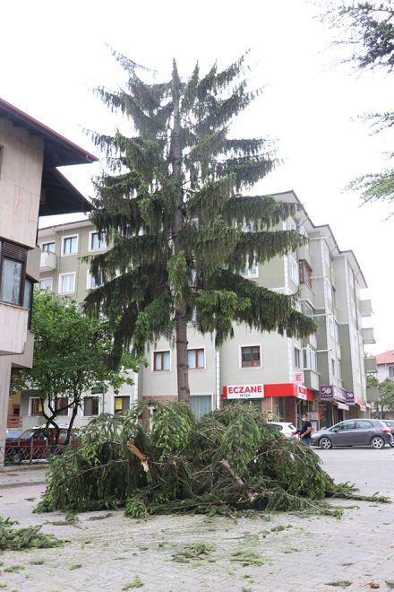 Bolu’da, öğle saatlerinde meydana gelen şiddetli rüzgâr kısa sürmesine rağmen etkili oldu. Rüzgar nedeniyle Bahçelievler Mahallesi Vardallı sokak üzerinde bulunan 15 metrelik köknar ağacının üst kısmında bulunan 5 metrelik kısmı kırılarak yola devrildi. Büyük bir gürültüyle araç ve yaya geçişinin yoğun olduğu sokağa devrilen ağaç parçası çevrede yaşayanların büyük korku yaşamasına neden oldu. Ağacın kırılan parçasının devrildiği sırada sokak üzerinde araç ve vatandaşların olmaması faciadan dönülmesini sağladı.