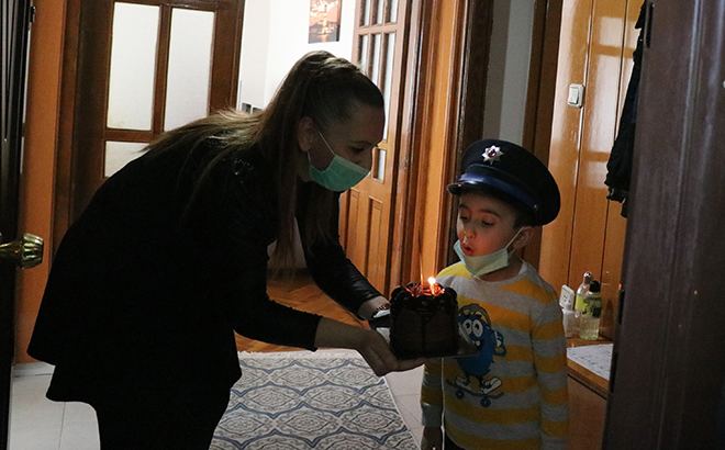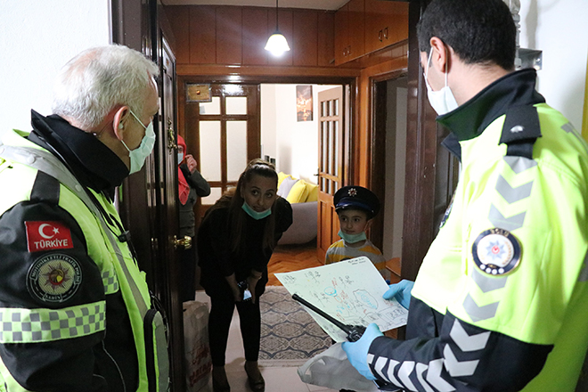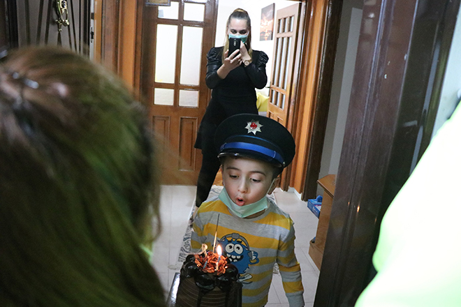 Annesiyle birlikte evlerinin penceresinden dışarı bakan Yaman, siren çalarak gelen polis ekiplerini görünce evde bulunan polis şapkasını takarak kapıyı açtı. Polis ekiplerini elinde pastayla gören küçük çocuk büyük mutluluk yaşadı. Ekipler, Hakan Yaman’ın doğum gününü kutladıktan sonra oyuncak polis arabasını hediye ettiler. Hakan Yaman ise, kendisine sürpriz yapan polis ekipleri için çizdiği resmi verdi. Polisler, korona virüs salgını bittiğinde küçük çocuğu polis motosikletine bindirmek için söz verdikten sonra evden ayrıldı.
