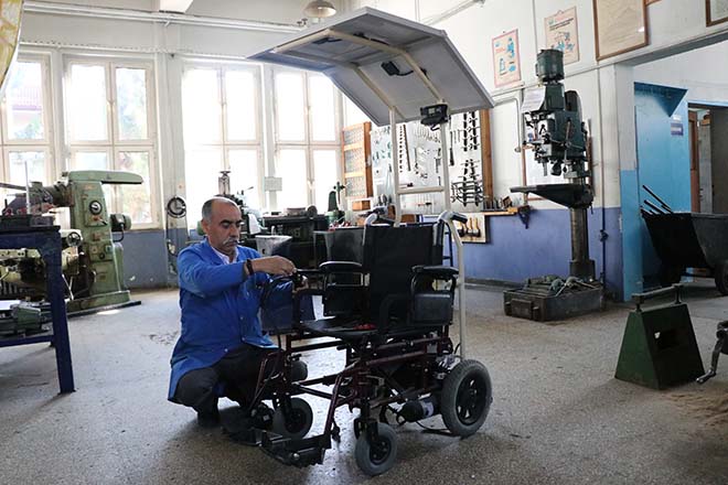 Engelli aracını gelen talepler üzerine geliştirmeye devam eden Veysel Aslan, “Buradaki aracımız atıl durumdaydı. Değerlendirelim ve farklı kullanılabilir hale getirelim diye düşündük. Önce engellilere, “Sizi en çok rahatsız eden şey nedir?”, “En çok istediğiniz şey nedir?” diye sorduk. Mesafeyle ilgili bir problemleri olduğunu gördük. En iyi akü bile olsa en fazla 30 kilometre gidebildiklerini, bunun da yarısını dönüş olarak kullandıklarında en fazla 15 kilometre gidebildiklerini gördük. Yaptığımız araştırmada bu mesafeyi ancak güneş paneliyle artırabileceğimizi düşündük. Hem gidecek hem de şarj edecek şekliyle bunu düşündük. Projelendirme aşamasından sonra yapımına geçtik. Aynı zamanda engellilerin telefonlarını ve başka araçlarını da şarj edebilecek hale getirdik” dedi.