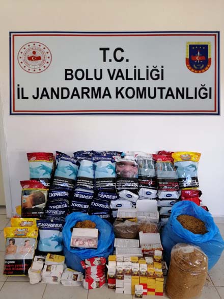 Edinilen bilgiye göre, İl Jandarma Komutanlığı ekipleri yaptıkları istihbarat çalışmaları sonucunda Bolu’nun Mudurnu ilçesi Taşkesti beldesinde, 1 iş yerinde kaçak sigara bulunduğu bilgisine ulaştı. Gelen bilgileri değerlendiren jandarma ekipleri, iş yerine yaptıkları operasyonda 2 bin 486 adet satışa hazır dolu makoron, 104 kilo kıyılmış tütün, 2 bin 500 adet boş sigara paketi, 1 adet sigara doldurma aparatı, 155 adet niteliğe uygun olmayan TAPDK bandrolü ele geçirildi. İş yerinde yakalanan 1 şahıs ise gözaltına alınarak, jandarma karakoluna götürdü.