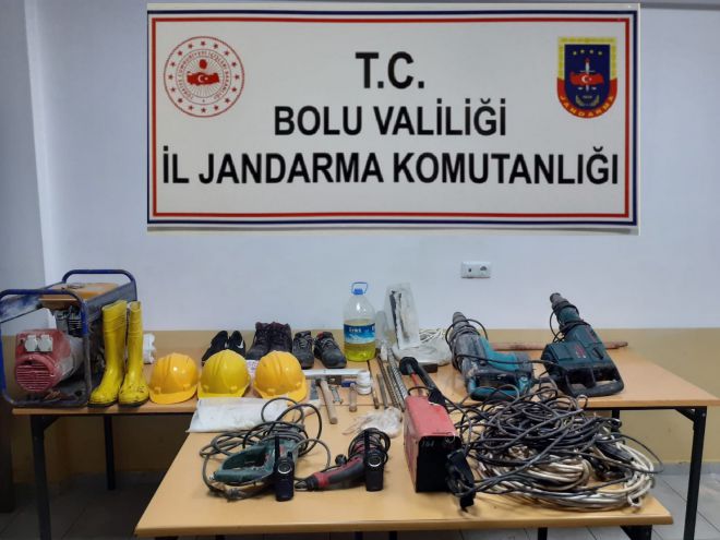 Edinilen bilgiye göre, Mengen ilçesine bağlı Düzağan köyü Karadere mevkiinde kaçak kazı yapıldığı ihbarı üzerine jandarma ekipleri operasyon başlattı. Bolu İl Jandarma Komutanlığı ekiplerinin bölgeye düzenledikleri operasyonda, patlayıcı maddelerle bir kaya parçasını kırarak define olduğunu düşündükleri yere ulaşmaya çalışan Murat D., Cuma K., Serdar G., Davut I., Ramazan D. ve Murat Ö. suçüstü yakalandı. Operasyonda, geçirilen 1 adet jeneratör, 3 adet kırıcı-delici matkap, 2 adet çekiç, 1 adet kaynak makinası, 2 adet hilti, 2 adet aselsan el telsizi, değişik ebatlarda seyyar kablo, 5 litre benzin ve define kazısında kullanılan bir çok malzeme ele geçirildi. İfadeleri alınmak üzere jandarma komutanlığına götürülen 6 şüpheli, işlemlerinin ardından adliyeye sevk edildi.