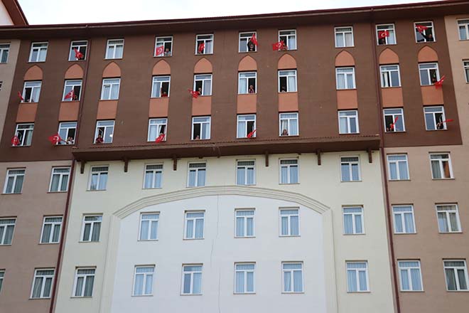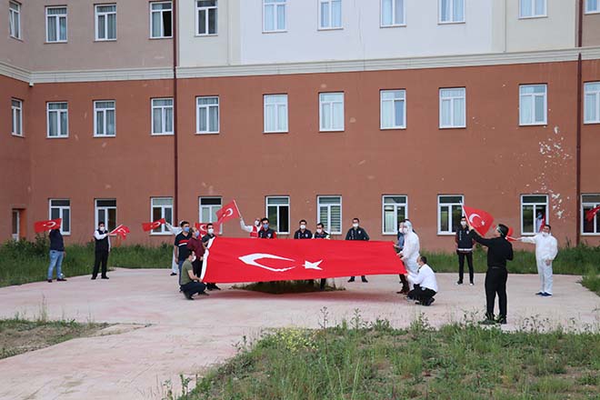 Kırgızistan’dan Türkiye’ye gelen 146 kişi, 3 gün önce korona virüs tedbirleri kapsamında 14 gün boyunca karantinada kalacakları Bolu Kredi ve Yurtlar Kurumu İl Müdürlüğüne bağlı Hayreddin Tokadi yurduna yerleştirildi. Yurtta kalan vatandaşların 19 Mayıs Atatürk’ü Anma, Gençlik ve Spor Bayramı’nı kutlayabilmeleri için Kredi ve Yurtlar Kurumu İl Müdürlüğü etkinlik düzenledi. Etkinlik kapsamında görevliler tarafından yurdun bahçesine büyük bir Türk bayrağı açılarak İstiklal Marşı okundu. Yurtta kalan vatandaşlar da Türk bayraklarıyla pencerelere çıkarak okunan marşlara ve şarkılara eşlik etti.