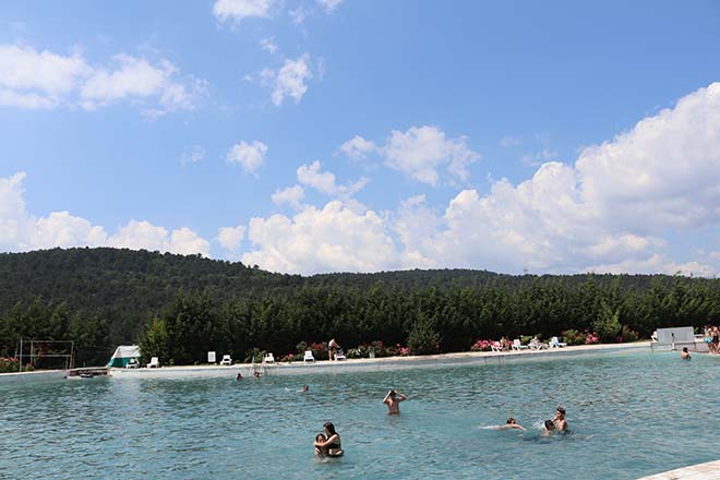 Daha önce burası çamur deryasıydı. Zaten temizlenmesi de mümkün değildi. Daha evvel suyu kaçırmışlar. Su kaçınca da burayı balçık doldurmuşlar. Balçık, kırmızı bir balçık. Hem gölü batırmışlar hem tratervenleri batırmışlar. Üzerlerine naylon sermişler, naylonların üzerine yukarıya çıkmasın diye kum sermişler. Naylon, kum, yosun karışımı berbat bir görüntü vardı. Buradan yaklaşık 150 büyük kamyonluk büyük tırlarla çamur çıkarttık. Bu işin imalat safhası ama bunun birde öncesi var. Havuzu yapmak için resmi prosedür işini bilmek lazım. Bunu yerine getirmek lazım. Birde onu yapacak ekonomik imkânı sağlamak lazım. Havuza ilk defa başladığımızda “bu havuzu ıslah etmemiz lazım” dediğimde sit alanı olduğunu söyleyerek bunun mümkün olmadığını belirttiler. Hatta bölge müdür yardımcıları bile “bu senin söylediklerinin olabilme ihtimali % 1’dir. % 99 senin söylediklerin olmaz” şeklinde konuştular. Ben bir şeyin olacağına inanınca sonuna kadar giderim. Tabiat parkını koruma kurulu heyetinin üyelerinin hepsiyle teker teker görüştüm. Hepsine bir sunum yaptım. Anlattığım hususları mantıklı ve doğru bulduklarını söylediler. “Orada bir değer varsa, bu değerin insanlara sunulması gerekiyorsa, senin o projenin orada yapılması gerekiyor” dediler. Bu toplantılarda yaptığımız brifing sonrasında buraya bir heyet gönderdiler. Gelen heyet benim söylediğim doğrultuda rapor verdi. Öncelikle olarak buranın sit alanı ile ilgili resmi müsaade işini hallettik. Ondan sonra da imalata başladık. Burada suyu zapt edememe gibi çok ayrı bir güçlükle karşılaştık ve imalatı gerçekleştirdik. Bu imalatın bize çok ciddi bir maliyeti oldu. Sonuçta havuzumuzu periyodik olarak temizleyecek hale geldik. Havuzu şimdi haftalık olarak temizliyoruz. Havuza günde 1000 metreküp saatte ortalama 50 metreküp su giriyor. Suyumuzun özelliği şudur; Bu su Türkiye’de minareli en zengin sudur. Sodyum oranı da en düşük sudur. Bu değerler ayrıca Danone firmasında da vardır. Buradaki bitki örtüsünü dağdan aldığımız su yeterli olmadığı için bu sudan suluyoruz. Biz buraya çim haricinde yaklaşık 20 bin tane ağaç ve çalı diktik ve bu suyla suluyoruz. Suyun minareli fazla olunca bitkilerin de daha hızlı büyümesini sağlıyor. Sonuçta bu suyu kurtararak insanların hizmetine sunduk. Zaten buradaki su sürekli bir akarsu pozisyonunda… Her gün havuza 1000 metreküp su giriyor ve 1000 metreküp su çıkıyor… Yaklaşık 4 günde bir havuzun % 25’i sürekli devridaim ediyor… Yani havuzumuzun böyle bir özelliği var. Suyumuz minareli zengin ve hiç durmadan akan bir su olduğu için ısısı sabit 22 derecedir. Yaz kış ısısı değişmez. Bu yüzden hem kısa sürede yosun üretiyor. Hem de su da yoğunlaşmış kalsiyum olduğu için bu da yosun gibi kısa sürede suyun üzerine çıkıyor. Bunu durduramıyorsun. Tıp’ta ki arkadaşlarım ve doktorlar bu konuda şunu söylüyorlar; Bakterilerin hücre zarının çabuk erimesini sağlayan bir özelliği var. Yani yaraları iyileştiriyor. Yüzlerinde sivilce çıkan gençlerin kısa sürede iyileştiğini görüyoruz. Bunu kendileri de söylüyor. Gelen hastalarda bunu bana anlatıyor. Antalya’da yaşayan Bolulu birisi vardı. Antalya’da cildinin bir yerini yara kaplamış. Hastalığının adı tespit edilemiyor. Tedavi de cevap vermiyor. Kanser’e kadar tedaviyi getirmişler. Kanser tedavisini de başlayınca cildi bütünüyle dökülmeye başlamış. Adam her şeyi bırakmış. “Öyle bir zordayım ki! “dedi. “Demirlerle hem de yarayı kaşıyorum” diyordu. Geçmişte burada acı su denilen dönemde uyuz hastalığına yakalanan koyunları buraya getirirlermiş ve yıkandıkları zaman da hastalık geçermiş. Yani buranın uyuzu iyileştiren özelliğini biliniyor. Ondan dolayı da burası acı su olarak bilindiği için geldi buraya 3 günde toparlanıp 1 hafta da iyileşti. Her yıl o yüzden buraya gelir. Buna ait bir sürü hikâyeyi size anlatabilirim.
