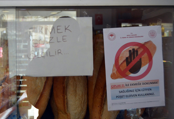 Aldığı tedbirler hakkında konuşan Namık Yılmaz, herkesin bu tip önlemler alabileceğini söyleyerek, “Buraya kalın asetat çektik. Öksürük ve hapşırmalara karşı yaptık. Sosyal mesafe kapsamında da bu şeridi çektik. Bir tane de ekmek dolabımız var. Buraya da kağıdımızı astık. Gelip bizi görsünler. Mesela sabah Tarım İl Müdürlüğü’nden geldiler, çok memnun kaldılar. Herkes böyle önlem alabilir” diye konuştu.