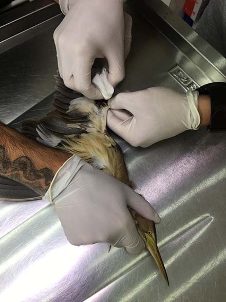 Edinilen bilgiye göre, kent merkezinde bulunan Atatürk Orman Parkı’nda güvenlik görevlisi olarak çalışan Ümit Bütün, park içerisinde dolaştığı sırada daha önce hiç görmediği bir kuşun uçamadığını fark etti. Kuşun yanına gittiğinde kanadından yaralı olduğunu gören Bütün, durumu Milli Parklar Müdürlüğü ekiplerine haber verdi. Parka gelen görevliler, uzun gagası ve devetüyü rengiyle dikkat çeken yaralı kuşun dünyada nesli tükenmekte olan ve nadir görülen 'Hint Gölet Balıkçıl Kuşu (Indian Pond Heron) olduğunu tespit etti. Görevliler tarafından veterinere götürülen kuşun röntgen filmleri çekildi. Kanadında kırık tespit edilen kuşun tedavisi yapıldıktan sonra rehabilitasyon için Düzce'ye gönderildi.