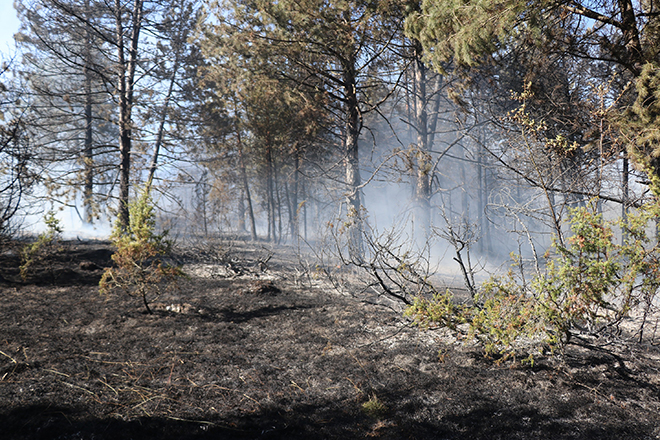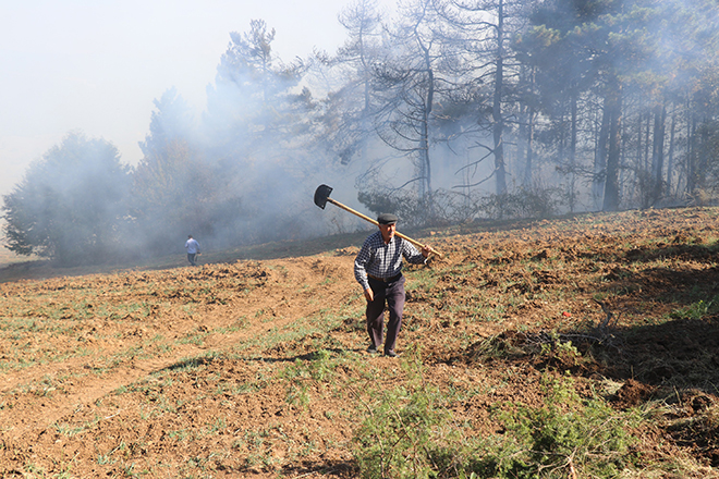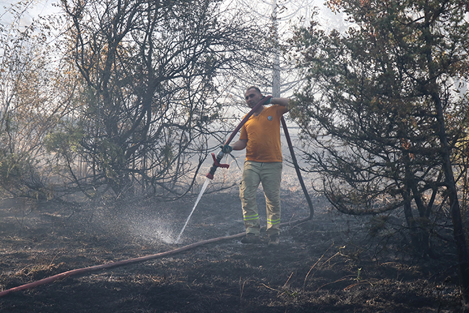 Yangını ilk gören ve ekiplere haber veren Ekrem Seçkin, “Yangını ben fark ettim. Siyah bir duman çıktı. Ben koşarak geldiğimde 2-3 tane ağaç yanıyordu. Daha 10 metrelik bir alan bile yanmamıştı. Hemen müdahale ettim. Ama alevler hemen sardı. Sonra jandarma ve itfaiyeye haber verdim” dedi.