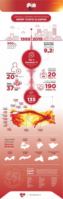 Depremin ardından tüm ekibiyle operasyon süreçlerine odaklanan DASK, Zorunlu Deprem Sigortası’na sahip konut sahiplerinin ilettiği hasar ihbarlarını değerlendiriyor. Yapılan bilgilendirmede; şu ana kadar İstanbul ağırlıklı olmak üzere çevre iller de dahil 2000'in üzerinde hasar ihbarı alındı. Eksperleri hasar tespiti için sigortalı konutlara göndermeye başlayan DASK, hasar süreçlerini etkin şekilde yönetmek için yürüttüğü çalışmalar sayesinde hasar tespitlerini mobil cihazlar üzerinden çok daha sağlıklı ve hızlı bir şekilde yapıyor. Hasar tespit ve değerlendirme süreçlerinin sonuçlanmasının ardından kısa sürede tazminat ödemeleri gerçekleştirilecek. Öte yandan bugün Türkiye’de her iki konuttan biri Zorunlu Deprem Sigortası ile güvence altında olduğu bildirildi. Sigortalılık oranı en yüksek iller arasında özellikle deprem geçirmiş iller yer alıyor. Yalova, Sakarya ve Bolu’da sigortalılık oranları yüzde 80’i aşarken, İstanbul’da ise yüzde 63’e ulaşmış durumda. Güncel hasar bilgilendirmeleri dask.gov.tr internet sitesinden takip edilebilirken; hasar ihbarları da yine aynı adresten ya da Alo DASK 125 çağrı merkezinden yapılabiliyor.