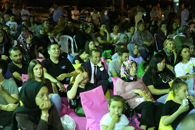 Sıcak yaz akşamlarına keyif katan etkinliğin ilk gösterimi Sağlık Mahallesinde gerçekleştirildi. Belediye tırı üzerindeki dev ekrandan gösterimi yapılan unutulmaz Türk filmlerinde biri olan “Çöpçüler Kralı” açık havada izleyiciyle buluştu. 7’den 70’e herkesin özlediği etkinliğin ilk gösteriminde vatandaşlar yoğun ilgi gösterdi. Türk filmlerini açık havada izlemenin mutluluğunu yaşayan vatandaşlara Bolu Belediyesi patlamış mısır ikramında da bulundu. Bolu Belediye Başkanı Tanju Özcan’da açık hava sinemasında yerini alarak keyifle filmi izledi. Sinema günlerinin ilkinin Sağlık mahallesinde başlatıldığını talep geldikçe diğer mahallelerde devam edeceğini belirten Başkan Özcan;“ Bizim küçüklüğümüzde bizleri çok duygulandıran ve güldüren filmleri sizlerin de izlemenizi istiyoruz çocuklar. Bugünkü “Çöpçüler Kralı” filmi özellikle seçildi. Sebebi ise bizim temizlik konusunda ne kadar hassas olduğumu göstermek açısından seçildi. İnşallah güzel olacak” dedi.