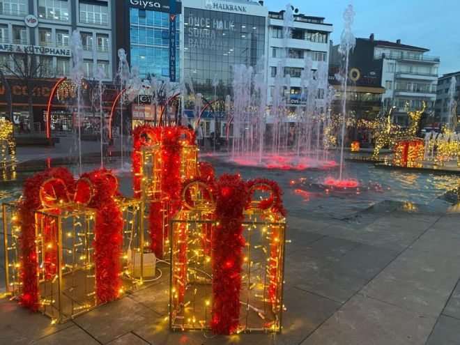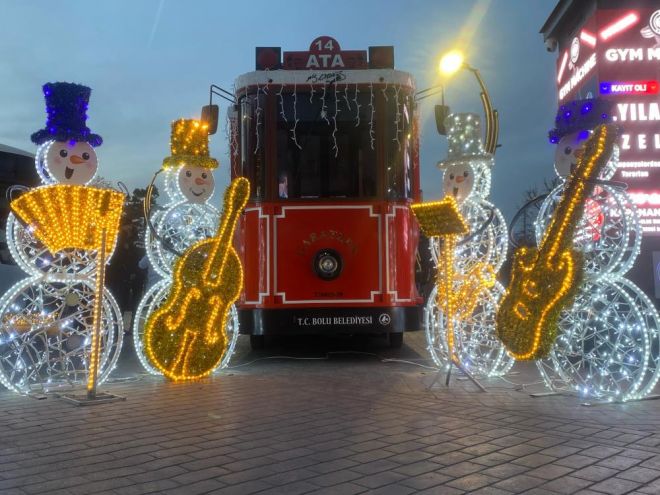 Bolu'da yılın son ayına girilmesiyle birlikte yeni yıla hazırlık çalışmaları başladı. Bolu Belediyesi'nce kentin en işlek noktalarından biri olan Valilik Meydanı'na süsleme çalışmaları yapıldı. Meydandaki havuzun çevresine çeşitli simge ve ışıklar yerleştirildi. Yeni yıl süslerini gören çocuklar, simgelerin önünde ve ‘2026' yazılı ışıklandrıma önünde hatıra fotoğrafı çekildi.