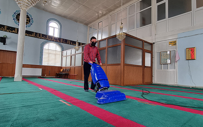 Bolu Belediyesi Temizlik İşleri Müdürlüğü ekipleri tarafından, ilimiz merkezde bulunan camilerin düzenli olarak gerçekleştirilen temizlikleri tüm hızıyla devam ediyor. Temizlik ekipleri tarafından gerçekleştirilen çalışmalar kapsamında camilerin iç kısımlar titizlikle temizlenirken, cami avlusu, abdesthane gibi dış alanlar da basınçlı temizlik aracıyla hem temizleniyor hem de dezenfekte ediliyor.