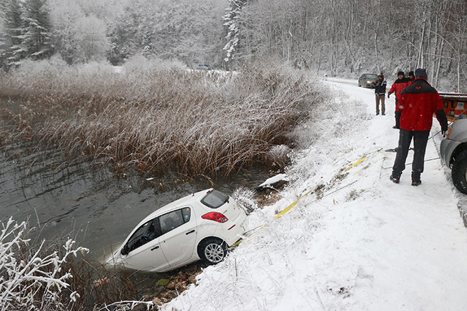 Edinilen bilgiye göre, tatil için Abant Tabiat Parkı’na gelen Arzu Doğan ve Mesut Yılmaz, göl çevresinde araçlarıyla seyir halindeyken kar nedeniyle kontrolden çıkan otomobil Abant Gölü’ne uçtu. Sürücü Arzu Doğan ve araçta yolcu olarak bulunan Mesut Yılmaz, bir kısmı suya gömülen otomobilden kendi imkânlarıyla çıkarak kıyıya kadar yüzdü. Kazadan yara almadan kurtulan Doğan ve Yılmaz, olay yerine gelen jandarma ekipleri tarafından ısınmaları için Tabiat Parkı’nda bulunan karakola götürüldü. Olay yerine gelen Bolu Belediyesi İtfaiye Müdürlüğü'ne bağlı dalgıcın göle girerek halat bağladığı otomobil çekici yardımıyla gölden çıkarıldı.
