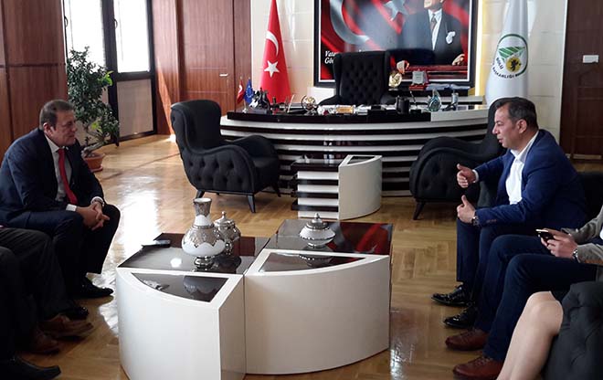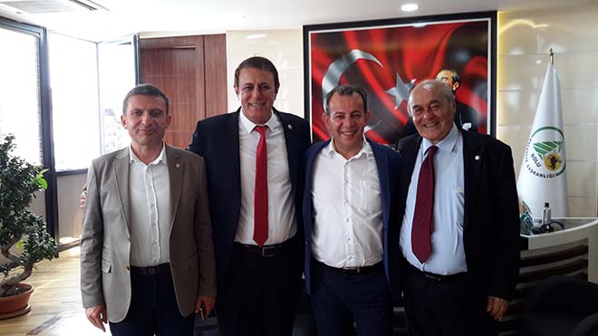 CHP Aydın milletvekili Hüseyin Yıldız bugün Bolu Belediye Başkanı Tanju Özcan’ı ziyaret etti. CHP Bolu il başkanı Kazım Karsu ile CHP Bolu Merkez İlçe Başkanı Ersan Türkoğlu’nun da yer aldığı ziyarette Bolu halkının Tanju Özcan gibi bir belediye başkanına sahip olmasından dolayı çok şanslı olduğunu vurgulayan Yıldız; “ Tanju beyle ne kadar övünsek azdır, 36 yıl sonra Bolu’da yüzümüzü güldürdü. Ben aynı zamanda Bolu milletvekili sayılırım. Şu anda Türkiye Büyük Millet Meclisinde görev yapan Cumhuriyet Halk Partili 136 milletvekili Tanju beyin arkasındadır. Tanju bey’in bizden bir şey istemesi yeterlidir” dedi. Ziyaretten büyük bir memnunluk duyduğunu söyleyen Bolu Belediye Başkanı Tanju Özcan ise “Hüseyin Bey’e nazik ziyaretleri için çok teşekkür ediyorum” dedi.