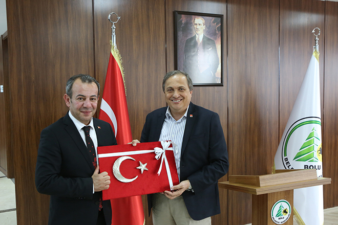Bolu Belediye Başkanı Tanju Özcan da Torun’a ve CHP yönetimine teşekkür ederek, “Sizler bize güvendiniz aday olarak gösterdiniz bizlerde seçimden, sandıktan başarılı bir şekilde çıktık. İnşallah Bolu’muza güzel hizmetlerde bulunmaya çalışacağız. Burası Ankara ve İstanbul’un arasında olan, 35 milyon insanın 2 saat içinde ulaşabileceği bir şehir. Olağan üstü bir doğası, önemli bir konum avantajı var. İnşallah hak ettiği noktaya taşımaya çalışacağız. Tabii yerel yönetimlerden sorumlu genel başkan yardımcımız olarak, hem de deneyimli bir belediye başkanımız olarak elbette sizlerin her zaman yardımlarınızı göreceğimizi ben biliyorum. Tabi bazı Bolulular ‘Sen milletvekilliğini bıraktın parlamentoda kim Bolu’nun hakkını, hukukunu savunacak?’ diyor. Ben de onlara diyorum ki; 140 arkadaşım var benim birlikte yola çıktığım 27’nci dönemde. Onlar halen parlamentoda görevli. Bolu’yla ilgili en ufak bir sıkıntı olduğunda ben o arkadaşlarımı rahatlıkla arayabileceğim ve Bolu’nun her türlü sorununu Büyük Millet Meclisi kürsüsünden dile getirmelerini sağlayacağız. Bundan hiç kuşkunuz olmasın diyorum sizlere güvenerek” ifadesini kullandı. Öte yandan Devlet Eski Bakanı ve Eski Bolu Milletvekili Kazım Oksay’da CHP Genel Başkan Yardımcısı Torun ile aynı saatlerde Bolu Belediye Başkanı Tanju Özcan’ı makamında ziyaret ederek, başarı dileklerini iletti.
