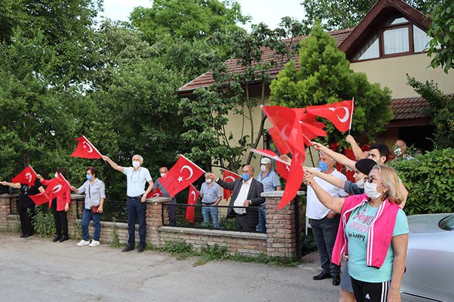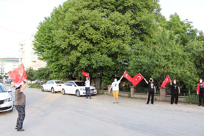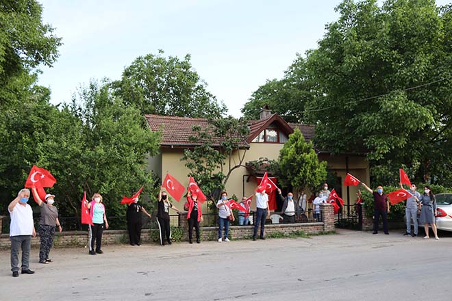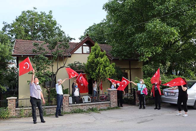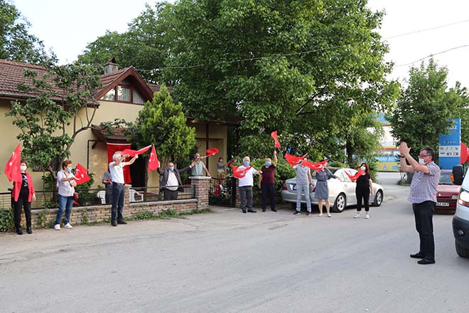 Saat 18;45’te CHP il başkanı Kazım Karsu’nun evinin önünde toplanmaya başlayan partililer, parti aracından çalınan “ Sarı saçlım mavi gözlüm”, “ 10.Yıl Marşı” ve “Dağ başını duman almış” marşlarına coşkulu bir şekilde eşlik ederek Türk bayraklarını salladılar. Saat tam 19,19’da okunan İstiklal Marşı sonrasında “İzmir Marşı” ile coşkulu bir şekilde kutlamalara devam eden partililere evlerden ve sokaktan geçen vatandaşlarda maskeli bir şekilde ve sosyal mesafeye dikkat ederek eşlik ettiler.