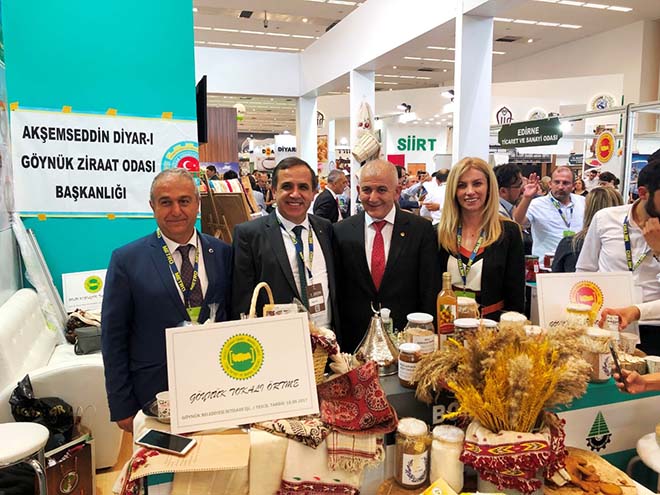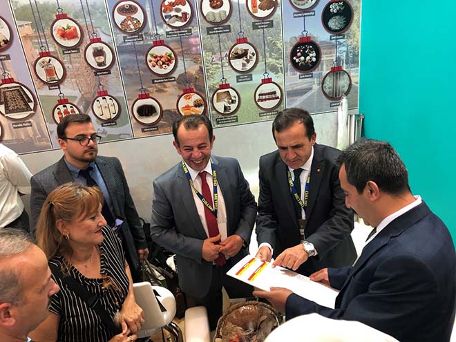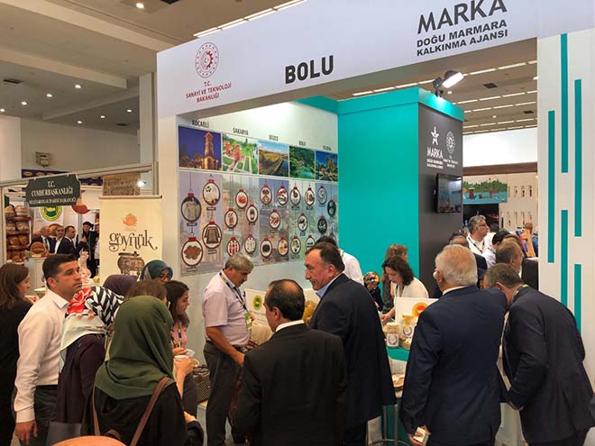 Cumhurbaşkanı eşi Emine Erdoğan’ın katılımıyla gerçekleştirilen zirvenin ve fuarın açılışında Vali Yardımcısı İlhan Turgut, Bolu Belediye Başkanı Tanju Özcan ve Başkan Yardımcısı Feridun Yılmaz, Ticaret ve Sanayi Odası Başkanı Türker Ateş, Başkan Yardımcısı Mustafa Özkoparan, Başkan Yardımcısı ve Ziraat Odası Başkanı Hakkı Fidan, Yönetim Kurulu Üyesi Melih Yaman, Park ve Bahçeler Müdürü Aylin Aydın, BAİBÜ Öğretim Üyesi Prof.Dr. Nusret Zencirci, ilçe ziraat odası başkanları, Doğu Marmara Kalkınma Ajansı ve İl Kültür ve Turizm Müdürlüğü yetkilileri yer aldı. Doğu Marmara Kalkınma Ajansı bünyesinde kurulan Bolu standında, İlimizde tescil edilmiş coğrafi işaretlerden olan Bolu Kızılcık Tarhanası ile Göynük uğut tatlısı davetlilere ikram edildi. Ayrıca yine tescil edilmiş coğrafi işaretlerden Göynük Bombay Fasulye ve tokalı örtmenin, yanı sıra tescil süreci devam eden ve içinde Seben Iza buğdayı, Kıbrıscık pirinci, Bolu keşi, Bolu dağ fındığı şekeri, Göynük eriği, Bolu patatesli ekmeği gibi ürünlerin yer aldığı 27 coğrafi işaretin gün boyu konuklara tanıtımı yapıldı. Bolu standı, davetli ve katılımcılardan büyük ilgi gördü. “Ekmeğe Fısıldayan Kadın” olarak bilinen Mine Ataman da gün boyu Bolu standında Bolu heyetiyle birlikte yer aldı. Cumhurbaşkanı eşi Emine Erdoğan’a, Bolu’nun coğrafi işarete konu ürünlerinin yer aldığı bir sepet de takdim edildi. Coğrafi İşaretli Ürünler Zirvesi ve Fuarı 21 Eylül’e kadar devam edecek.