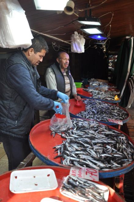 Havaların soğuması ile birlikte tezgahlar balıkla dolmaya başladı. Akçakoca ve Ereğli’den getirilen balıklar Mudurnu pazar tezgahlarında yerini aldı. İnce hamsi 50, iri hamsi 70 ve çinekop 70 TL’den satışa sunuluyor. Donmuş ithal palamutun üç tanesi ise 100 TL’den alıcısıyla buluşuyor.