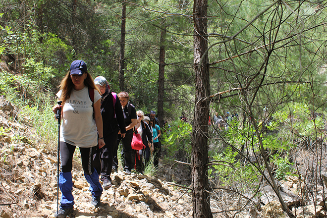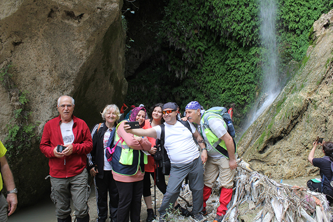 Doğaseverler, köylerin, derelerin ve yemyeşil çam ormanlarının arasından geçerek eşsiz güzelliği ile görenleri kendisine hayran bırakan Suharladı Şelalesi’ne ulaştı. Metrelerce yüksekten akan suların görsel şölen sunduğu şelalede, yorgunluklarını su içerek ve buz gibi suya girerek atan doğa tutkunları, bölgedeki tarihi kalıntıları da inceledikten sonra Türk bayrağı açarak yürüyüşü sonlandırdı.