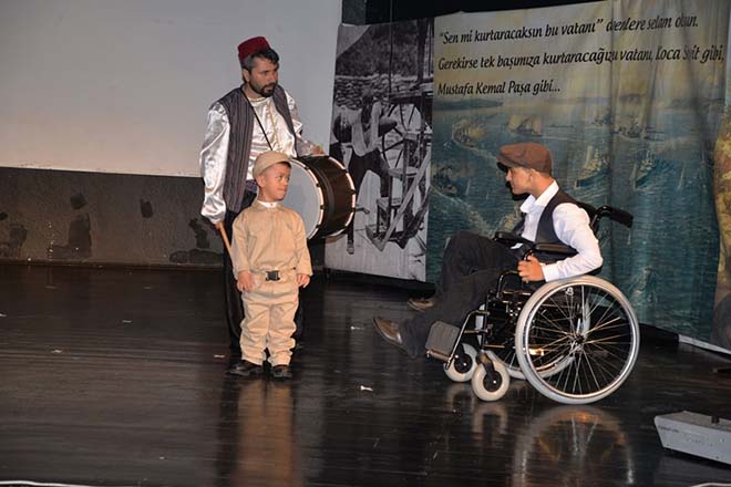 İl Kültür ve Turizm Müdürlüğü Konferans Salonunda düzenlenen etkinliğe Bolu Valisi Ahmet Ümit, Aile, Çalışma ve Sosyal Hizmetler İl Müdürü Bekir Koçyiğit, daire müdürleri, engelli ailelerimiz, engelli bireyler, gaziler ve davetliler katıldı. Saygı Duruşu ve İstiklal Marşının okunması ile başlayan programda konuşan Aile, Çalışma ve Sosyal Hizmetler İl Müdürü Bekir Koçyiğit, bu özel hafta kapsamında düzenlenen ve düzenlenecek olan etkinlikler hakkında bilgiler verdi. Aile, Çalışma ve Sosyal Hizmetler İl Müdürü Bekir Koçyiğit’in konuşmasının ardından Semiha Şakir Spastik Engelli Çocuklar Bakım ve Rehabilitasyon Merkezi öğrencileri ile Bolu Abant İzzet Baysal Üniversitesi Hemşirelik Bölümü öğrencileri tarafından ortaklaşa hazırlanan tiyatro gösterisi yer aldı. Engelli bireylerin ellerine imkânlar verildiğinde neler yapabileceğinin de bir göstergesi olan tiyatro gösterisinde “Çanakkale Destanı” canlandırıldı. Zihinsel, bedensel ve işitsel engelli çocuklarımızın oynadığı tiyatro gösterisinde, evlatlarımızın üstün performansları zaman zaman duygulu anlar yaşayan izleyenler tarafından uzun süre alkışlandı. Tiyatro oyunu sonrasında Bolu Valisi Ahmet Ümit, tiyatro gösterisinde emeği geçen öğrencileri tebrik ederek başarılarının devamını diledi. Düzenlenen etkinlik hatıra fotoğrafının çekilmesinin ardından sona erdi.