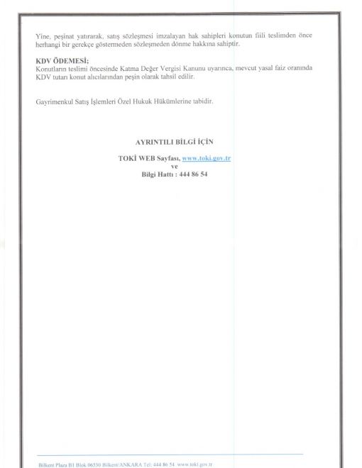 2+1 Konutlar için Başvuru Bedeli: 500.00 TL (Konut Tahmini Bedeli:159.800,00 TL)