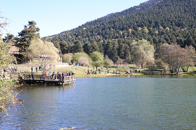 Bolu’da, kent merkezine 13 kilometre uzaklıkta bulunan ve 4 mevsim Türkiye’nin en önemli turizm merkezlerinden birisi haline gelen Gölcük Tabiat Parkı, hafta içi gelen mevsimin ilk karının ardından sıcaklıkların yükselmesiyle tatilcilerle doldu. Güneşli havayı fırsat bilerek hafta sonu tatillerini çam ağaçlarının içerisinde geçirmek isteyen vatandaşlar, göl çevresinde yürüyüş yaparak bol bol fotoğraf çektirdi. İstanbul’dan hafta sonu tatilini Bolu’da geçirmek için gelen bir tatilci, “Gölcük çok güzel. Doğası bakir bir doğa. El dokunulmamış birçok yerine. Bu ikinci gelişim. İlk geldiğimde her yer karlarla kaplıydı. Göl buzdu. Bu mevsimde de çok güzel. Her mevsimde görmek istiyorum” dedi.