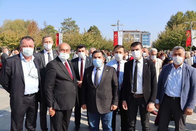 Anıtpark’ta ki törenlere katılanlar arasında yer alan CHP Bolu İl Başkanı Kazım Karsu ile İYİ Parti Bolu İl Başkanı Ahmet Örnekbaş’ın samimiyeti ve CHP’liler ile İYİ Partililer arasındaki sıcaklık törene katılan herkesin dikkatini çekti. Anıtpark’taki törenin hemen arkasından Atatürk anıtına giden CHP’liler ve İYİ Partililer Cumhuriyetimizin 97’inci kuruluş yıl dönümünü anısına hatıra fotoğrafı çektirdiler…