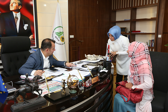 Görüşmede Bolu Belediye Başkanı Tanju Özcan, yakından ilgilendiği vatandaşların sorunlarını dinledi. Tüm talepleri tek tek not alan Özcan, yardımcı olabileceği konular ile ilgili daire müdürlerine sorunun çözümü için talimat verdi. Görüşmelerde ayrıca, seçim sonrası gönderilen tebrik çiçeklerinden elde edilen gelirlerle 8 yaşındaki oğluna akülü sandalye alınan bir anne de Başkan Özcan’ı ziyaret ederek teşekkür etti.