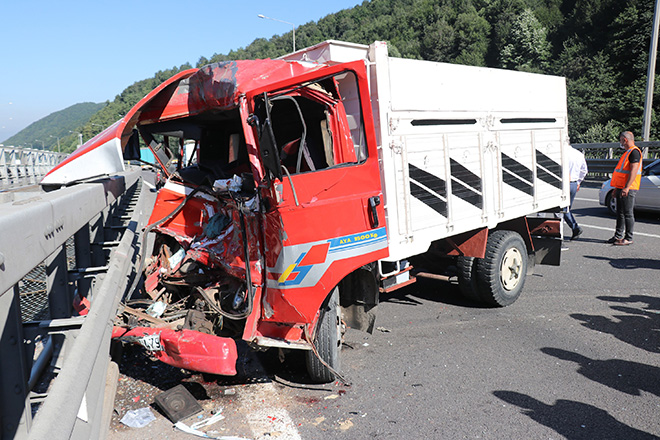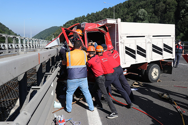Kaza, saat 08.30 sıralarında TEM Otoyolu'nun Bolu Dağı mevkiinde meydana geldi. Edinilen bilgiye göre, İstanbul istikametine seyir halinde olan Burhan A. idaresindeki 45 PA 4479 plakalı kamyon, aynı istikamette ilerleyen Mustafa Gedikli yönetimindeki 46 PA 439 plakalı tıra arkadan çarptı. Çarpmanın etkisiyle savrulan kamyon demir bariyerlere çarparak durabildi. Kazada, hurdaya dönen kamyonda ağır yaralanan sürücü aracın içinde sıkıştı.