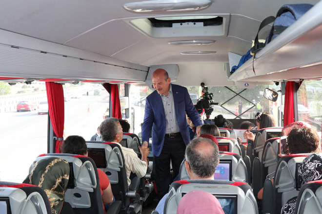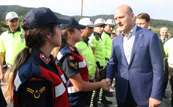 İçişleri Bakanı Süleyman Soylu, Kurban Bayramı tatili boyunca devam edecek olan trafik tedbirlerini yerinde denetlemek amacıyla, Gerede-Karabük karayolu üzerinde kurulan uygulama noktasına gelerek tedbirleri yerinde denetledi. Ekiplerin çalışmalarını yerinde denetleyen Bakan Soylu, Emniyet Müdür Yardımcısı Aydın Aksoy’dan bayram boyunca alınacak tedbirler, güzergahtaki trafik yoğunluğu ve yaşanan kazalarla ilgili bilgiler aldı. Daha sonra uygulama esnasında kontrol için durdurulan araçlardaki sürücülerle sohbet eden Bakan Soylu, sürücüleri dikkatli seyahat etmeleri konusunda uyarırken, araçlarda bulunan çocuklara hediyeler verdi.