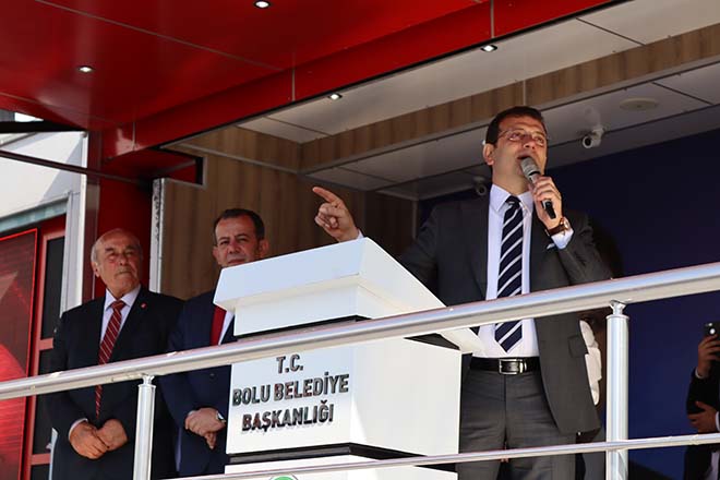 İstanbul Büyükşehir Belediye Başkanı Ekrem İmamoğlu yaptığı konuşmada şu ifadelere yer verdi; “Benim şehrimin her noktasını korumak ve geliştirmek vazifesini yerine getirdiğimde biliyorum ki İstanbul, Türkiye’yi motive eder. İstanbul, Türkiye’yi ayağa kaldırır. Bizim İstanbul’da atacağımız her olumlu adımın Bolu’yu da etkileyeceğini biliyorum. Bolu’ya da katkı sunacağını biliyorum. O bakımdan sorumluluğumun büyüklüğünün farkındayım. Onun için kim olduğu belli olmayan daha düne kadar 2-3 bin lira maaşla çalışan bir adama İstanbul’un en kıymetli iki noktasını ne amaçla teslim ettiğinizi millete açıklayacaksınız… Ben bu meselenin yalnızca İstanbul’un meselesi olmadığı için Bolu’da da söylüyorum. Bu ve bunun gibi meseleler Ahlaki meselelerdir, kamu çıkarını koruma meselesidir. İdari, Hukuksal, kamusal prensipler meselesidir. Dolayısıyla orada buna ses çıkarmadığınız zaman Türkiye yozlaşır. Ülkedeki kamu çıkarının yozlaşması demek ülkeye olan güveni azaltır. Ülkeye idare edenlere olan güveni azaltır. Dolayısıyla bu ve bunun gibi durumlara karşı duran kimliğimizle bütün belediye başkanlarımız mesuldür. Ben İstanbul’da sahip çıkacağım, Tanju bey Bolu’da sahip çıkacak. Ana prensipler üzerinden kişisel çıkarları yok sayarak bundan vazgeçmeyeceğiz. Onun için bize güvenin ve inanın sizi asla yanıltmayacağız.