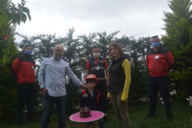 Alpağut Mahallesi’nde yaşayan 6 yaşındaki Mert Aydın, korona virüs tedbirleri kapsamında sokağa çıkamadığı için doğum gününü kutlayamadı. Aydın’ın doğum gününü kutlayamamasına üzülen ailesi, ona unutamayacakları bir sürpriz hazırlamak için çalışmalara başladı. Baba Özgür Aydın, itfaiyeci olma hayali olan Mert Aydın’ın doğum gününü kutlamaları için durumu itfaiye ekiplerine anlattı. Kendilerine anlatılan bu duruma duyarsız kalmayan Bolu Belediyesi İtfaiye Müdürlüğü ekipleri, Mert Aydın’ın doğum gününü kutlamak için yaşadığı eve geldi. Ellerinde pasta ve küçük çocuğun giymesi için itfaiyeci kıyafeti ile Mert Aydın’ın kapısını çalan itfaiye ekipleri, minik çocuğa duygu dolu anlar yaşattı.
