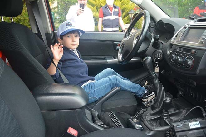 Mert Aydın kendisi için hazırlanan pastayı üfledikten sonra itfaiye ekiplerinin getirdikleri kıyafeti giydi. Büyük mutluluk yaşayan Mert Aydın, itfaiye kıyafetini giydikten sonra itfaiyeci ağabeyleri ile hatıra fotoğrafı çektirdi.