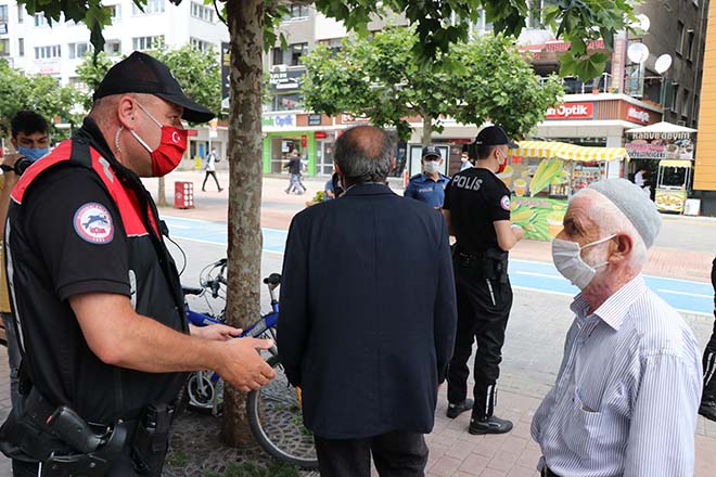 Bolu’da, korona virüs tedbirleri kapsamında maskesiz sokağa çıkan vatandaşlara yönelik İzzet Baysal Caddesi’nde uygulama yapıldı. Yaya ve ekip araçlarıyla cadde üzerinde uygulama yapan ekipler, anonslarla vatandaşları maske takmaları ve sosyal mesafeye uymaları konusunda uyardı. Maskesiz dolaşan veya maskelerini kurallara uygun şekilde takmayan yüzlerce kişiye 900 lira para cezası kesildi. Bazı vatandaşların ise, polislerin uygulama yaptığı noktaya yaklaştıklarında maskelerini taktıkları görüldü.