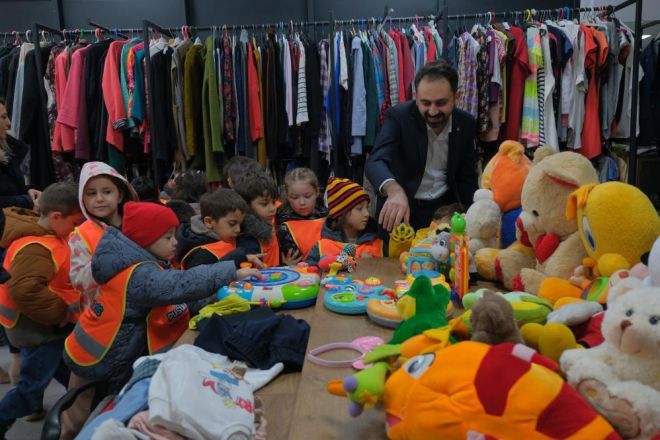 Bolu Belediyesi'ne ait hayır çarşısı, hayırseverlerin desteği ile yüzlerce vatandaşın ihtiyaçlarını karşılamaya devam ediyor. Bolu'daki hayırsever vatandaşlar tarafından bağışlanan kullanılabilir durumdaki ikinci el kıyafet ve eşyaları ihtiyaç sahipleriyle buluşturan hayır çarşısı, kreş öğrencilerine ev sahipliği yaptı. Görevli öğretmenlerin denetiminde hayır çarşısına gelen 5 yaş grubu 20 çocuk, yardımseverlik örneği göstererek ihtiyaç sahibi yaşıtları için oyuncak ve kıyafet bağışında bulundu. Bolu Belediyesi Kültür Sanat ve Sosyal İşler Müdürü Ergin Yönet tarafından karşılanan minikler, hayır çarşısında görevli personelin de desteğiyle kendilerine küçük gelen ya da kullanmadıkları sağlam ve temiz kıyafetleri bağışladılar. Çocuklarla yakından ilgilenen Yönet, bu örnek davranışlarından ötürü miniklere teşekkür ederek hediyeler verdi. Toplu fotoğrafın ardından ziyaret sona erdi.