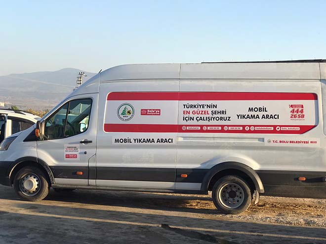 Bolu Belediyesi Temizlik İşleri Müdürlüğü’nün araç filosuna kattığı ‘Mobil Yıkama Aracı’, duvar yazılarının temizlenmesi, afişlerin sökülmesi, Kökez çeşmelerinin yıkanması, otobüs duraklarının temizlenmesi ve çöp noktalarında oluşan ağır ve katmanlaşmış kirliliklerin temizlenmesi için kullanılıyor. Alt geçitlerdeki yazılar, duvarlardaki yazılar, Kökez çeşmelerinde oluşan katmanlaşmış yosun ve kirlilik tabakaları, yeraltı çöp konteynerleri ve etrafı ve çöp biriktirme noktalarında oluşan katmanlaşmış kirler yüksek basınç ve gerektiğinde özel ince kumla gerçekleştirilen kumlama tekniği ile temizleniyor.