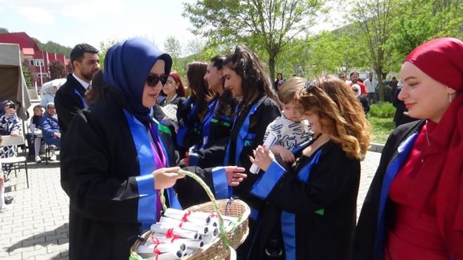 Törenin sonunda öğrenciler, kep atma geleneğini yerine getirerek keplerini havaya fırlattı. Coşkulu anlar, öğrencilerin oyun havaları eşliğinde halay çekmesiyle devam etti.