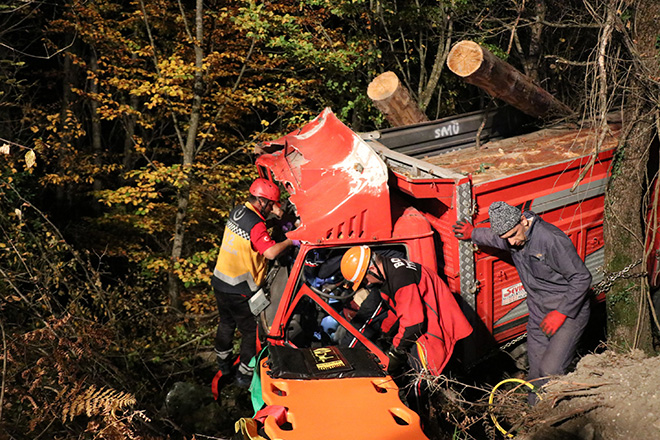 Hurdaya dönen kamyonda sıkışan yolcu Abdullah Akgül’ü kurtarmak için itfaiye ve UMKE ve jandarma ekipleri seferber oldu. Kamyonu hareket etmemesi için ağaca zincirle bağlayan ekiplerin yaklaşık 1 saatlik çalışması sonucunda Akgül, sıkıştığı yerden çıkarıldı. Olay yerinde ilk müdahalesi yapılan Akgül, İzzet Baysal Tıp Fakültesi Acil Servisi’ne götürüldü.