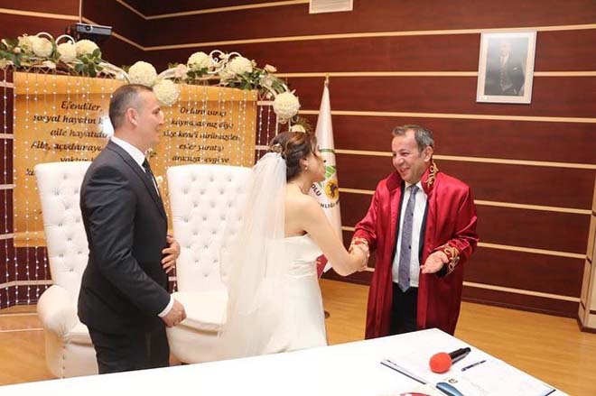 Murat Özcan ve Ayşegül Hande Dağdeviren çifti bugün yapılan nikah töreniyle dünya evine girdiler. Genç çiftin nikahını Bolu Belediye Başkanı Tanju Özcan kıydı. Başkan Özcan "İlk nikahımızı kıydık. En az onlar kadar heyecanlıyım. Hayalini kurduğum gülümseyen Bolu’nun temelini mutlu ailelerle birlikte inşa edeceğiz. Bütün ailelerimizin evinde bahar rüzgarları esecek. Genç çiftimize ömür boyu mutluluklar diliyorum" dedi.