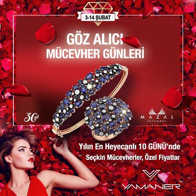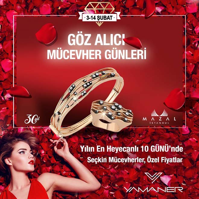 Her yıl, sevgililer gününde yaptıkları farklı organizasyonlarla dikkat çeken, Yamaner Kuyumculuk’un iş yeri sahibi Çağlar Yamaner’e “Bu yıl sevgililer gününde yine sürprizleriniz olacak mı?” Diye sorduk. Ve kendisinden şu cevapları aldık. “Kuruluşumuzdan bu yana 30 yıl geçti. Bu sene sevgililer gününde daha farklı daha özel ne yapabiliriz diye düşündük. Hem herkesin zevkine hitap edelim, hem de bütçelerini zorlamayalım istedik. Fiyatı uygun yapalım derken kalitemizden de taviz veremezdik. Bu çerçevede, bu yıl çok moda olan baget taşların kullanıldığı, Yamaner Kuyumculuk’a özel, üç ayrı koleksiyon oluşturduk. Bu koleksiyonu çok cazip fiyatlarla sevgililer gününde müşterilerimizin beğenisine sunacağız. İkinci olarak Yukarı Çarşı-Arasta Cadde mağazalarımızda oluşturduğumuz fırsat köşelerinde seçtiğimiz ürünleri maliyetine verme kararı aldık. Buradaki hedefimiz müşteriye uygun fiyatlı ürünler verirken bizim de stoklarımızı rahatlatmak. Son olarak da çok özel olduğunu düşündüğümüz Mazal İstanbul’un elmas-pırlanta koleksiyonuna sadece altı günlüğüne, bir fuar havası içerisinde müşterilerimizin beğenisine sunacağız.”