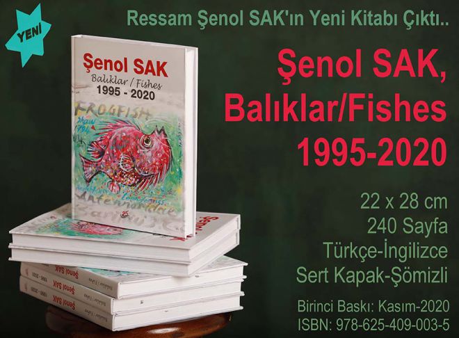“Şenol SAK, Balıklar/Fishes 1995-2020” adını taşıyan bu kitap, 240 Sayfa, 22 x 28 cm boyutunda, Renkli Kuşe kağıt, Sert kapak-Şömizli ve İngilizce-Türkçe olarak yayımlandı. Kitapta, sanatçının bu süreçte değişik tekniklerde ürettiği -balık- temalı yüzlerce eserinin görseli, alanında önemli yazar ve sanatçıların görüşleri, yine sanatçının değişik zamanlardaki sergi ve etkinliklerine ait fotoğraf albümlerinden geniş bir seçki, kronolojik olarak ele alınıyor.