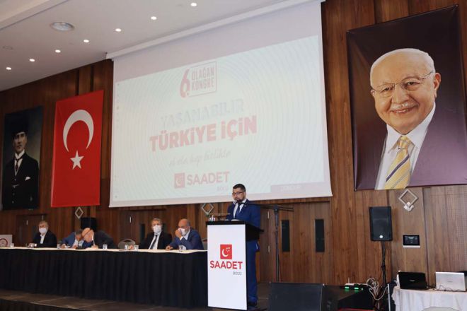 Saadet Partisi’nin 6. Olağan Kongresi bugün yoğun bir katılımla gerçekleştirildi. Covid- 19 süreci göz önüne alınarak yapılan kongreye Saadet Partisi Genel Başkan Yardımcısı Atik Ağdağ, CHP Bolu İl Başkanı Kazım Karsu, Bolu Belediye Başkanı Tanju Özcan,İYİ Parti Bolu İl Başkanı Ahmet Örnekbaş, AK Parti eski il başkanlarından Ömer Sayın başta olmak üzere yüzlerce kişi katıldı. Saygı duruşu ve İstiklal marşının okunmasının ardından kürsüye gelerek kongrenin açılış konuşmasını yapan Saadet Partisi Bolu il başkanı İsa Sayın