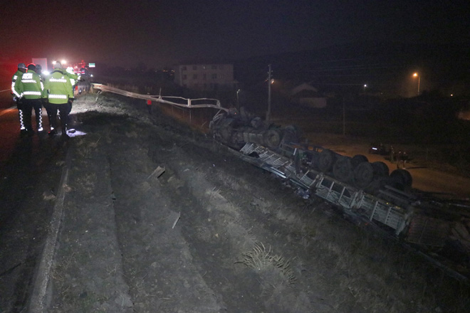 Kaza, saat 22.30 sıralarında TEM Otoyolu Yumrukaya köyü mevkiinde meydana geldi. Edinilen bilgiye göre, Ankara istikametine seyir halinde olan Kadir Altundağ idaresindeki 63 M 3211 plakalı demir yüklü tır, kontrolden çıkarak bariyerlere çarptı. Yaklaşık 50 metre boyunca bariyerleri parçalayarak ilerleyen tır şarampole devrildi. Büyük bir gürültüyle panik halinde evlerinden çıkan köylülerin ihbarı üzerine olay yerine 112 sağlık ve polis ekipleri sevk edildi. Kazada, hurdaya dönen demir yüklü tırdan yara almadan kurtulan tır sürücüsü kendi imkanlarıyla tırdan çıkmayı başardı. Şarampole devrilen tırı ve çevreye yayılan demirleri kaldırmak için çalışma başlatıldı.