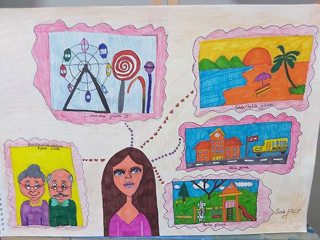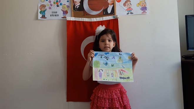 Çocuklar, tüm dünyayı etkisi altına alan korona virüs salgını sona erdiğinde yapmayı hayal ettiklerini çizdikleri resimlerle kağıda dökerken; resimlerinin fotoğrafını çekip kısa bir video ile hikayelerini de anlatarak kendilerine ithaf edilen tek bayramda becerilerini gösterme şansı yakaladılar.